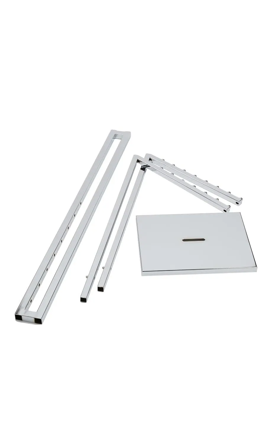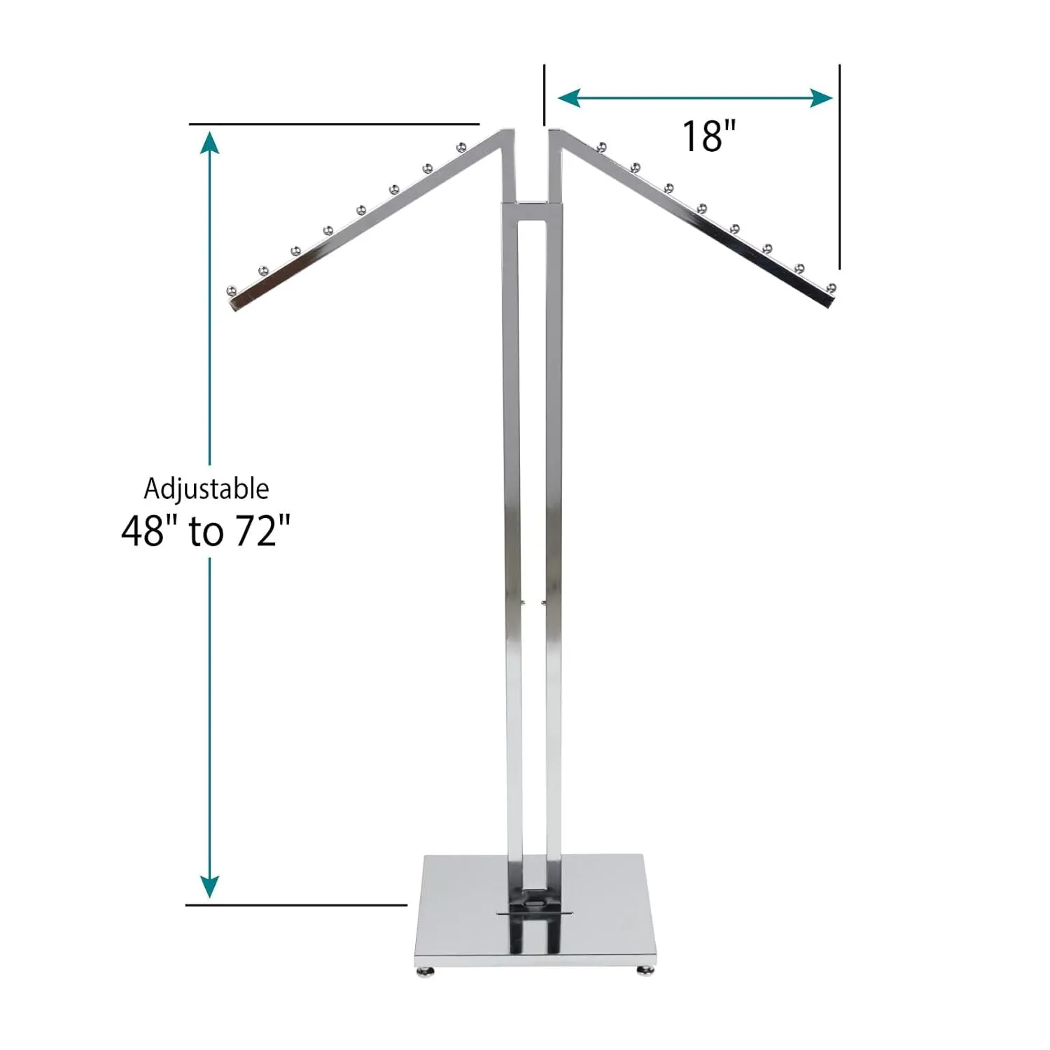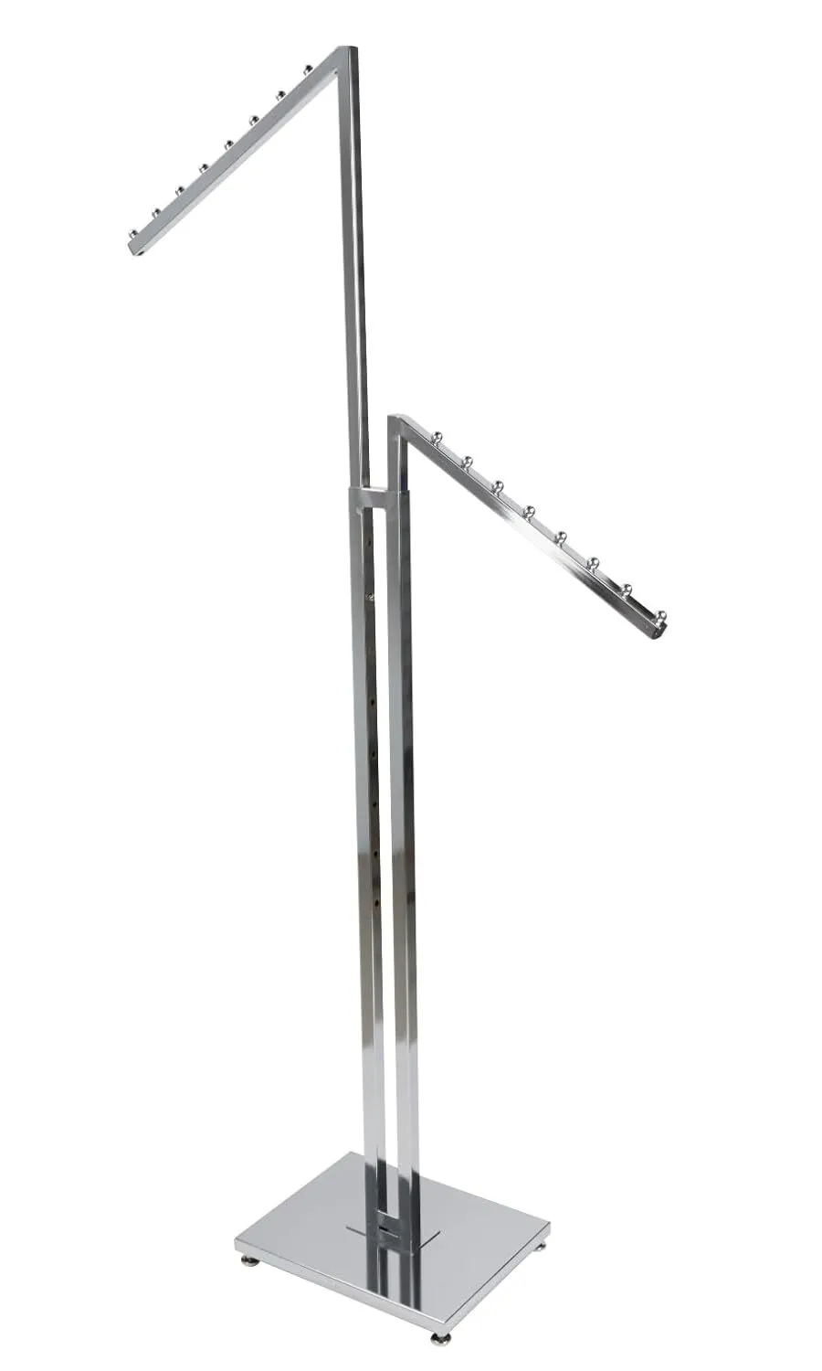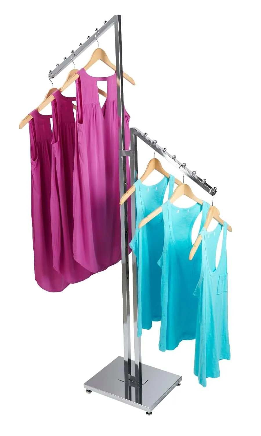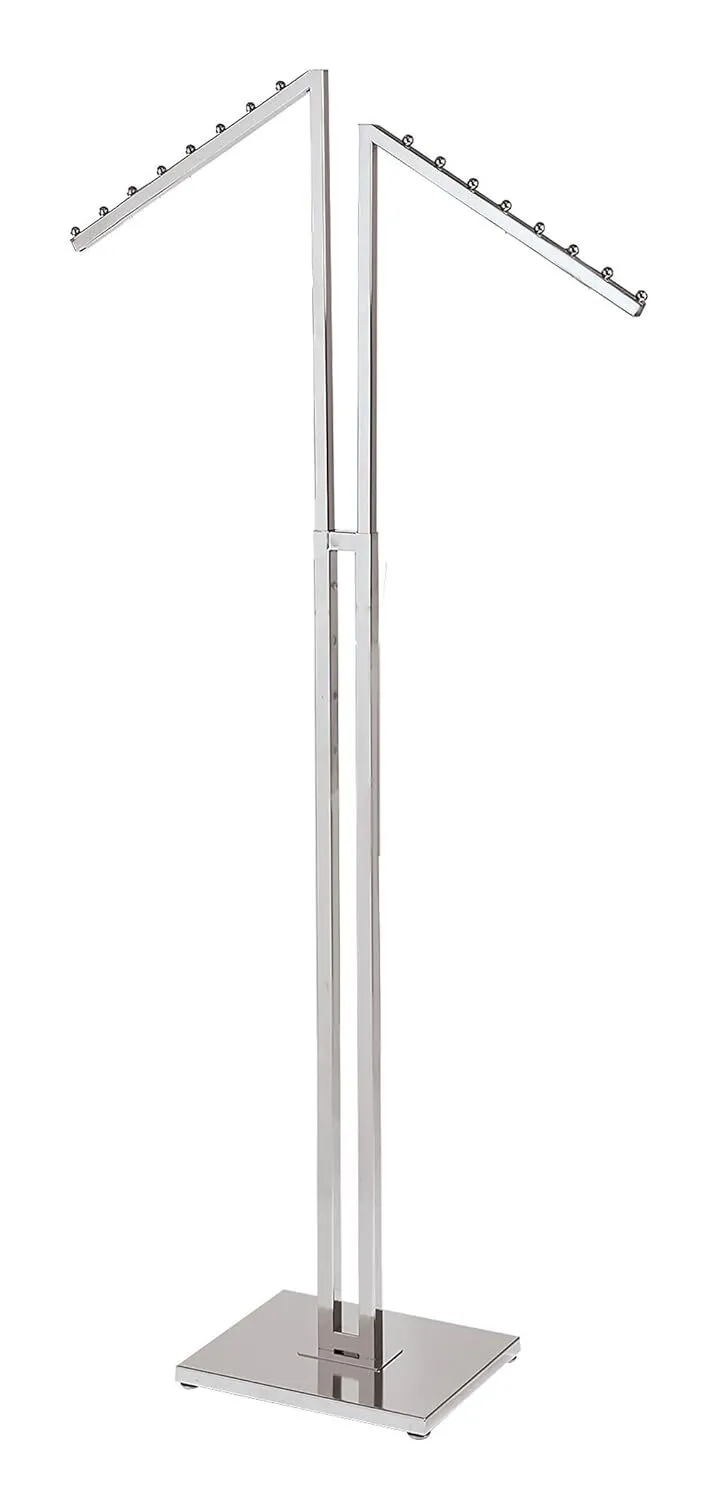 Versatile Clothes Display Rack: This chrome clothes display rack is ideal for showcasing garments in boutiques and thrift stores. Its two-way design with slant arms offers a sleek and modern look, perfect for highlighting your latest collections.