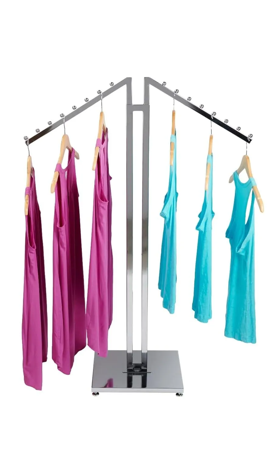 Efficient Store Display Rack: Maximize your retail space with this store display rack, featuring a slant arm design that provides an organized and attractive presentation. Ideal for any retail store display, it enhances the accessibility of your clothing items.