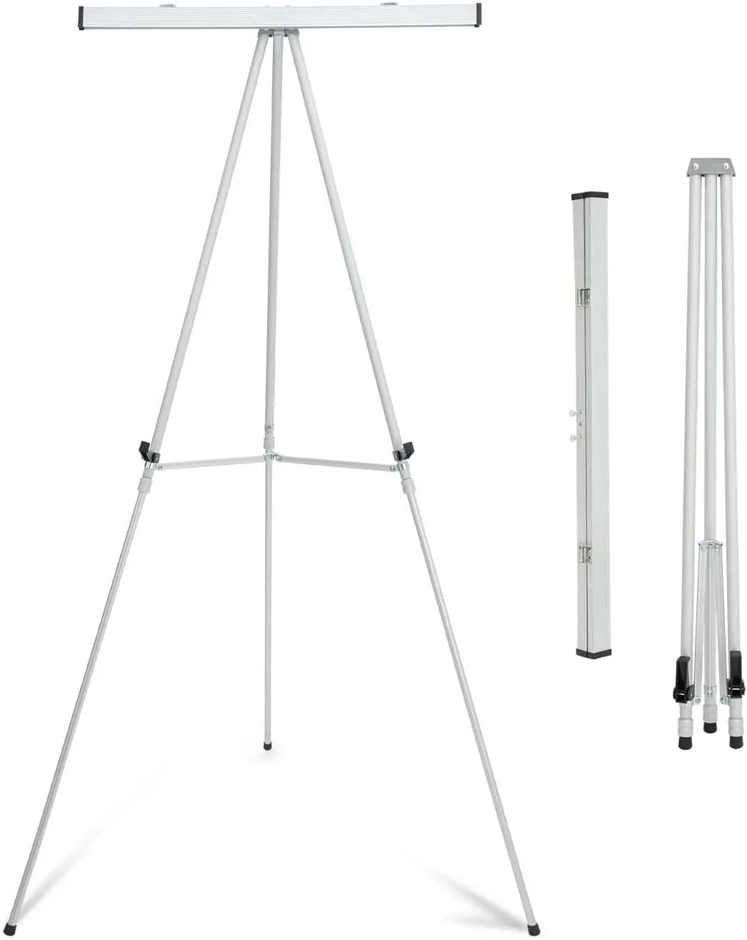 Secure: Our tripod display easel is made with lightweight aluminum. The Sturdy tripod easel and non-slip rubber feet enhanced stability and desktop protection. The non-skid rubber feet provide added stability and also protect floor surfaces.