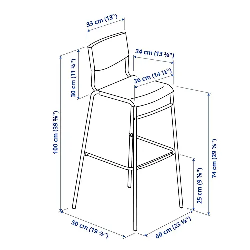 Bar Stool with backrest, Black/Black 74cm (29 1/8")