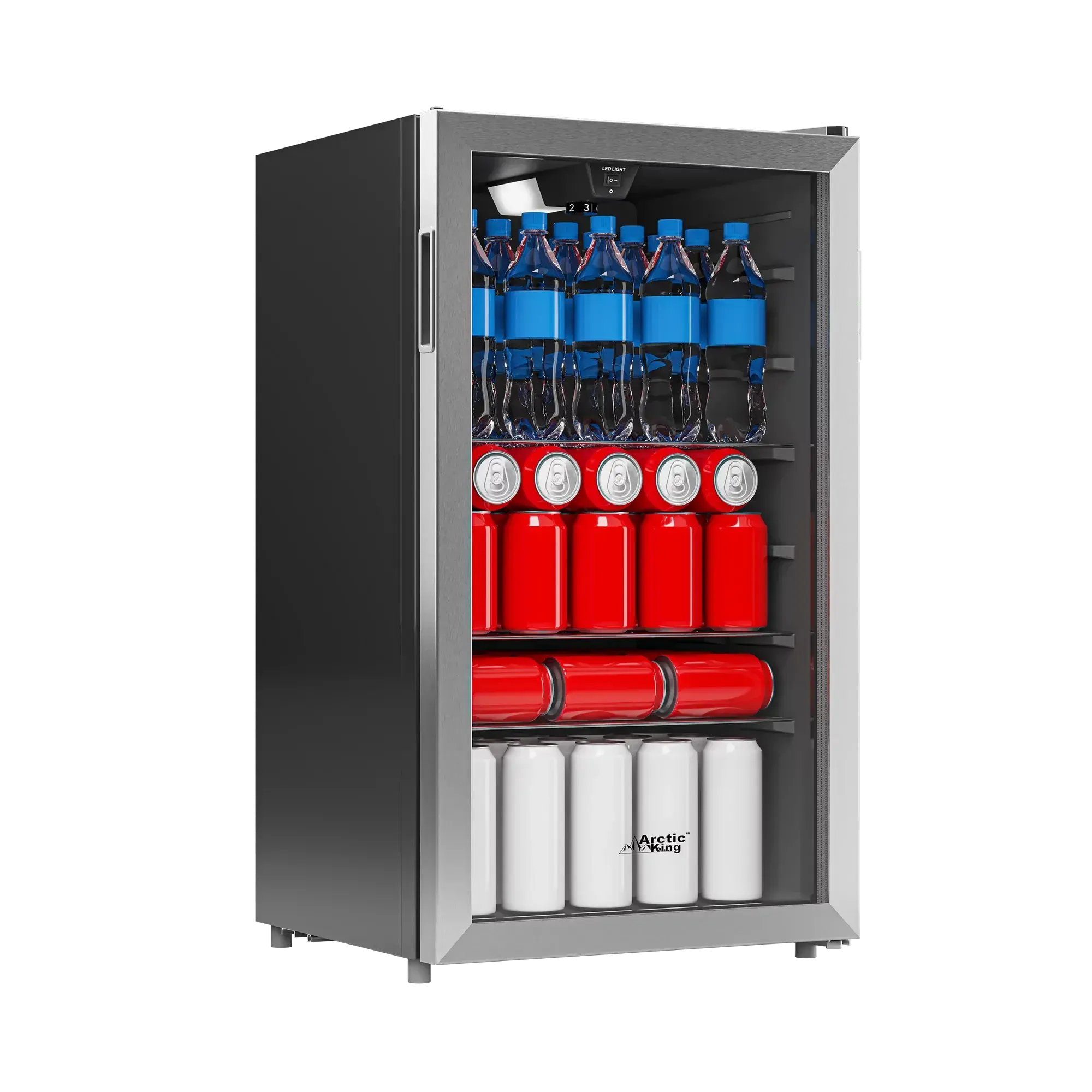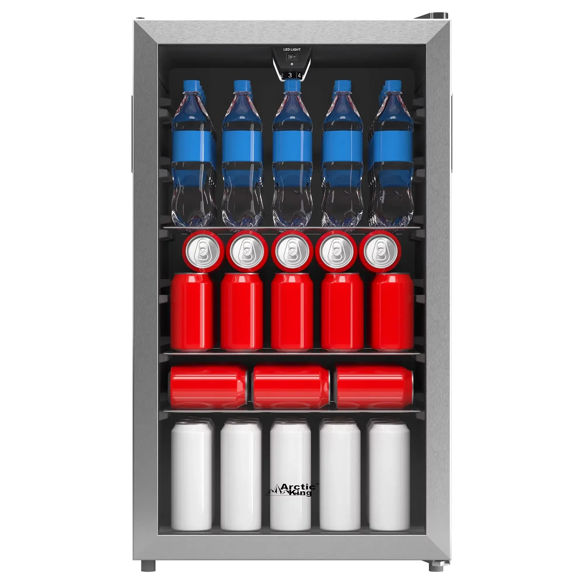 Introducing the Arctic King 115-Can Beverage Fridge Cooler in Stainless Steel Look - the ultimate cooling solution for all your beverage storage needs. Whether you're hosting a party, stocking up on drinks for your home bar, or looking to keep your favorite beverages within arm's reach, this beverage fridge is designed to offer ample space and convenience.