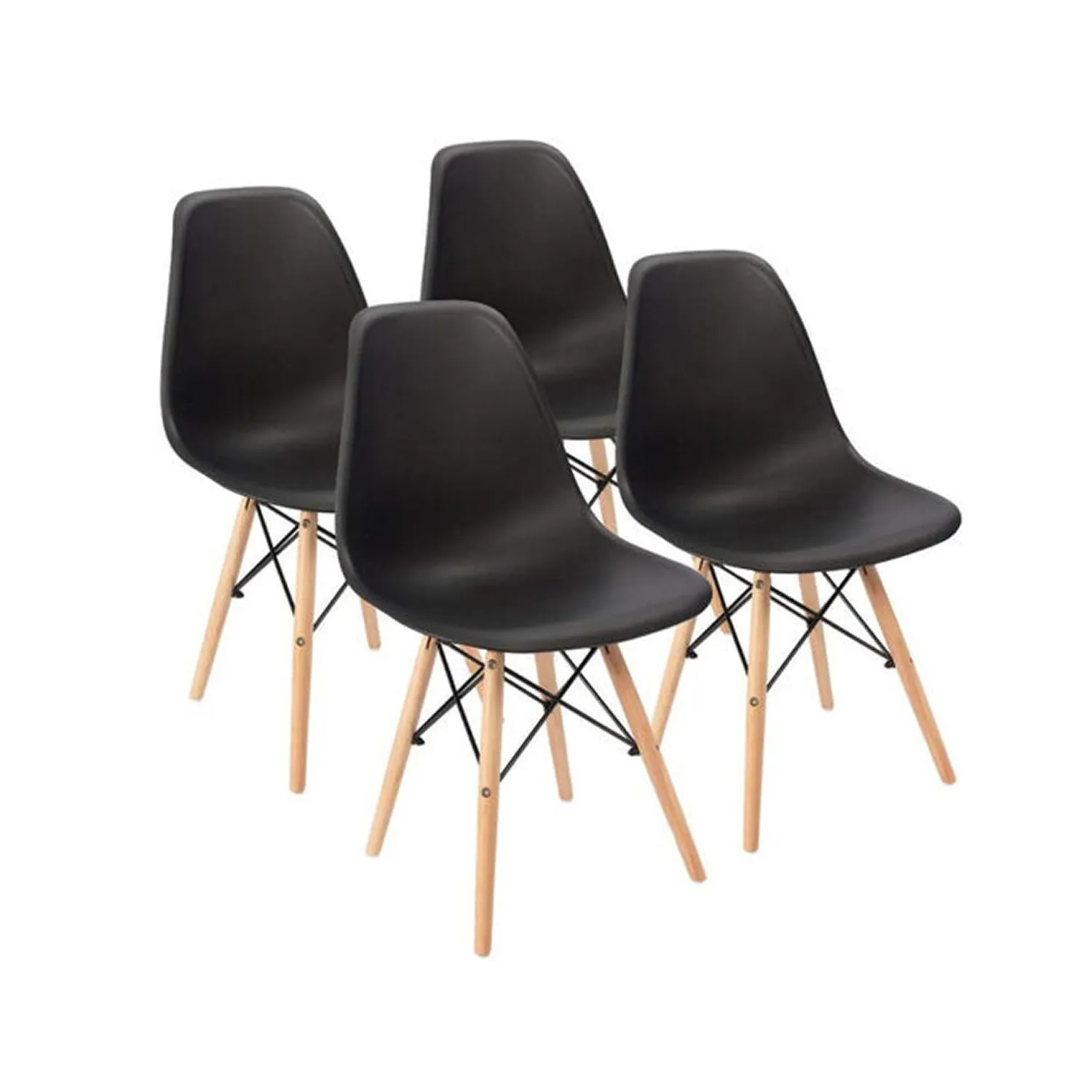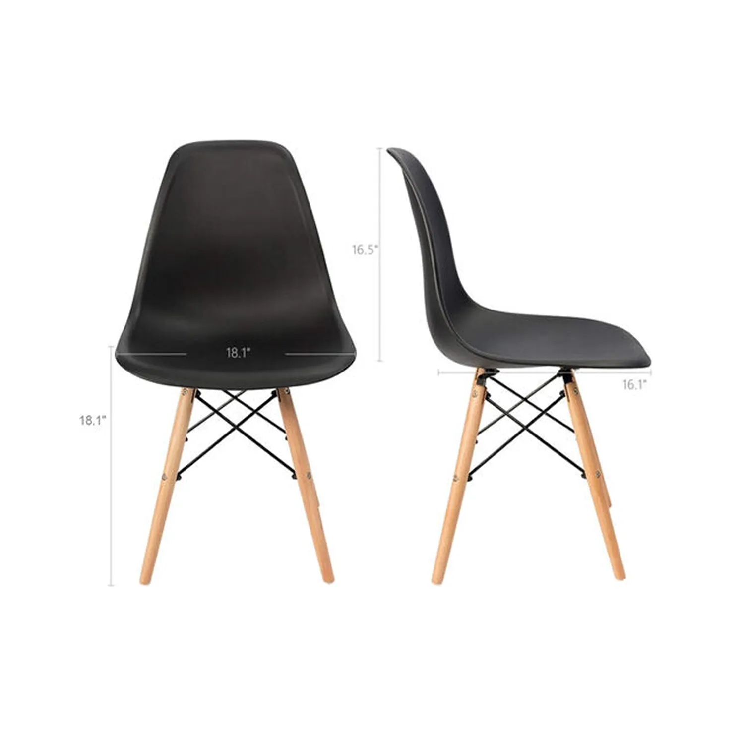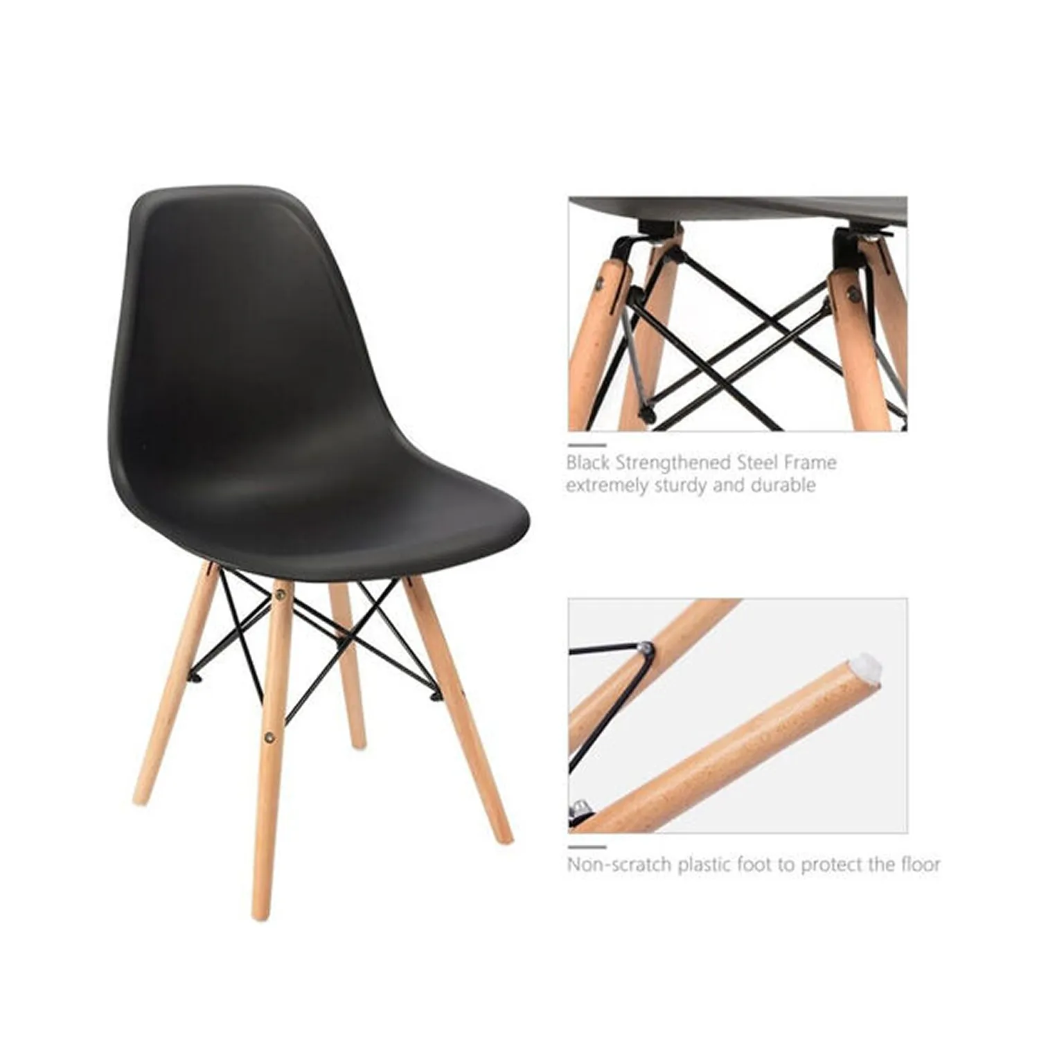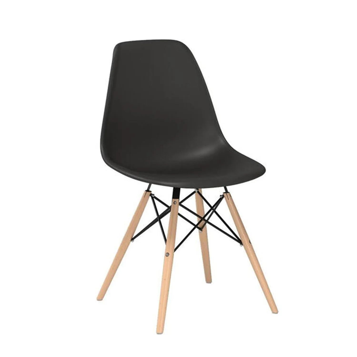 Dining Chair with Wooden Legs and Black Metal Cross - Black