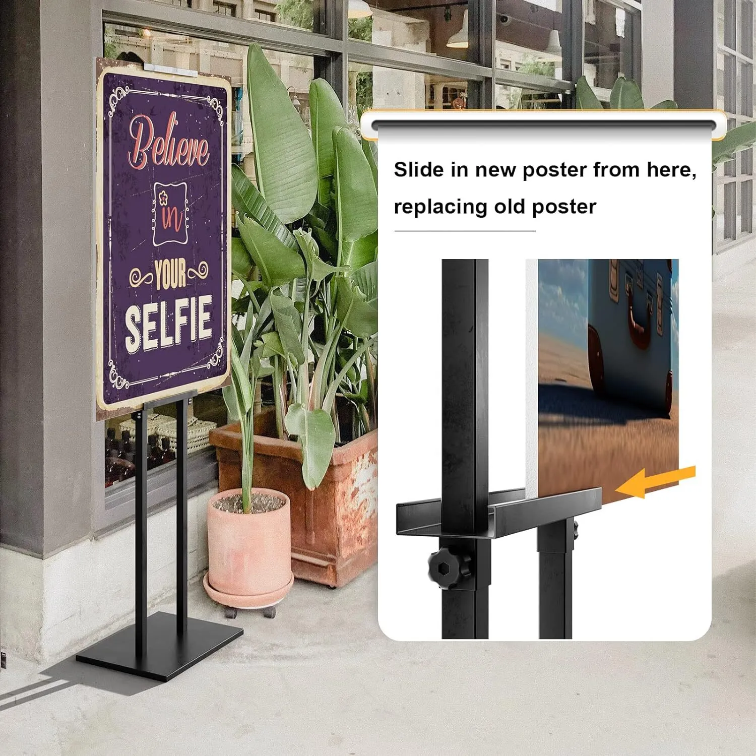 Adjustable --Easily adjust the height of your poster stand (up to 75 inches) with a simple turn of the knob. Fits 33 x 75 inch banners.
