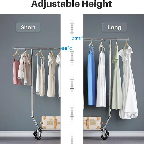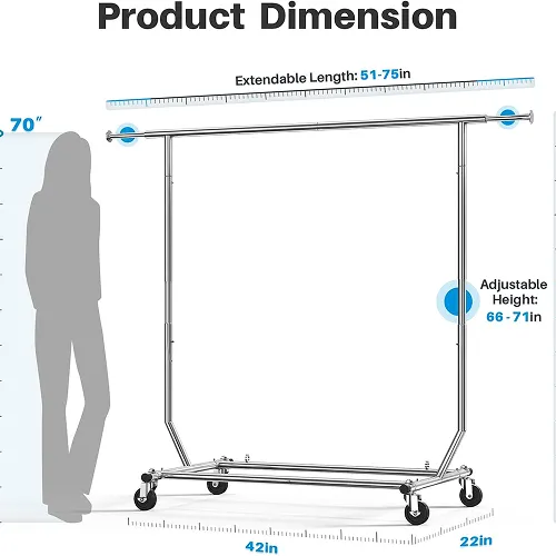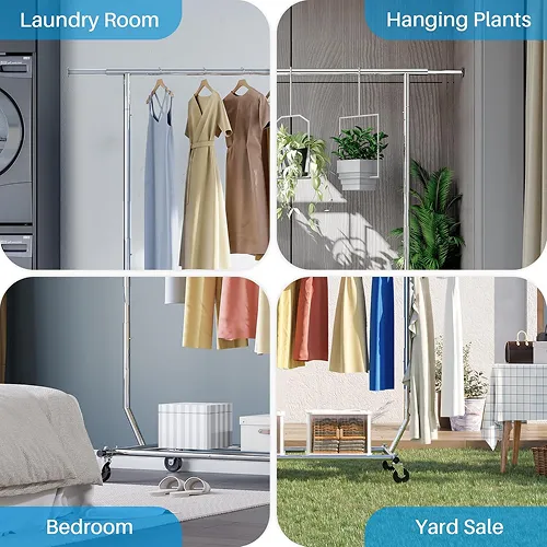 Our 3rd Generation rolling clothes rack uses heavy duty steel for stronger support. With this commercial grade garment rack you can say goodbye to wobbly and bending racks. Please rest assured to buy!