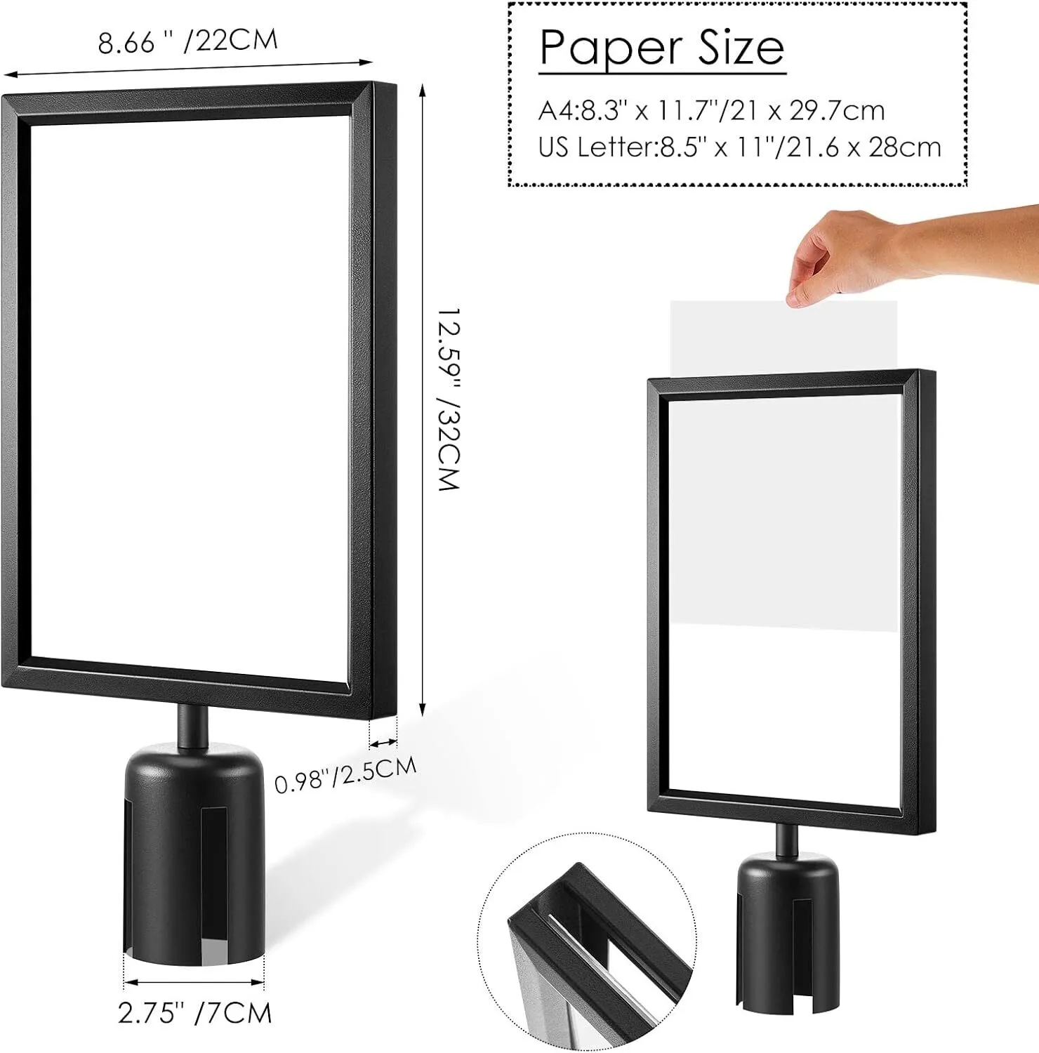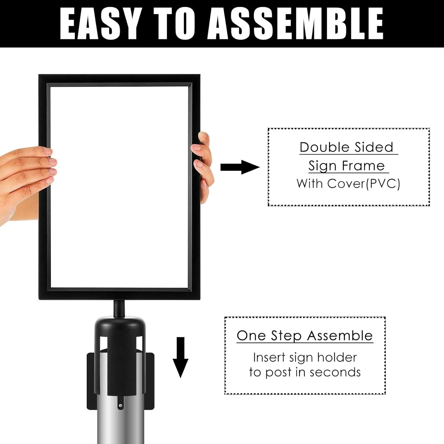 Easy to Install: our stanchion top sign frames are easy and convenient for you to install and display, you can just assemble your sign or poster in seconds; No more laboriously inserting the frame into the slot, saving your time and effort