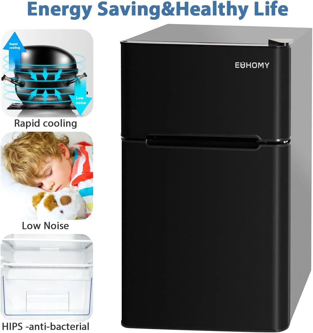 EVERYTHING WE DO IS TO SATISFY YOU - Dedicated to save energy. Mini refrigerator have UL energy certificates and only need 0.98 kwh per day. In the long run, this is very good for your wallet. Euhomy provides a one-year warranty service. If you experience any issues, please ask us for help and we will help you solve them. Your satisfaction is our unremitting pursuit. Please note: You'd better put the small fridge with freezer upright for at least 24 hours before using it.